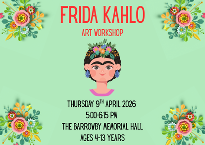 In this workshop, you will explore Frida Kahlo's unique style and vibrant themes. You will create an art piece inspired by Kahlo's bright colours and floral patterns.